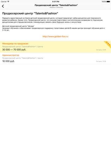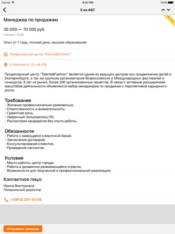 - Просмотр подробного описания вакансий