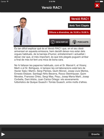 Cada cop que inicio lstreaming: publicitat. Cada cop que em quedo sense wifi: publicitat. Cada cop que em truquen i torna a iniciar lstreaming: publicitat. Cada cop que ho poso en pausa i torno a iniciar: publicitat. Magrada molt Rac1 i els escolto desde fa 15 anys. Ara els haig descoltar via internet, però amb tanta publicitat que només sescolta per internet, es fa molt difícil i fa lexperiència descoltar la ràdio molt pesada.