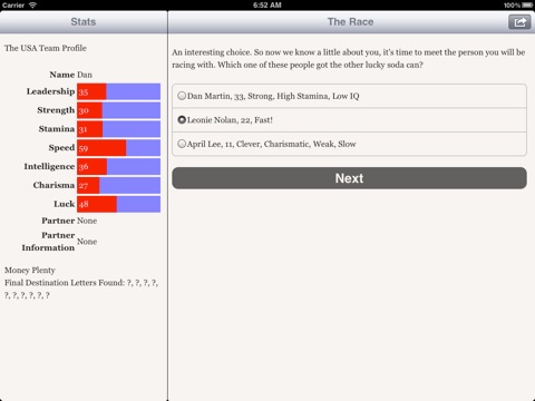 You are about to go on the journey of a lifetime as you take part in the event known the world over as ‘The Race’. With a huge cash prize, being a participant on The Race is a great opportunity for success. You have been chosen to take part and race through Peru to an unknown, final destination. Every step of the way, the choices you make will affect your performance, as well as the other teams around you! Can you make it to the end?