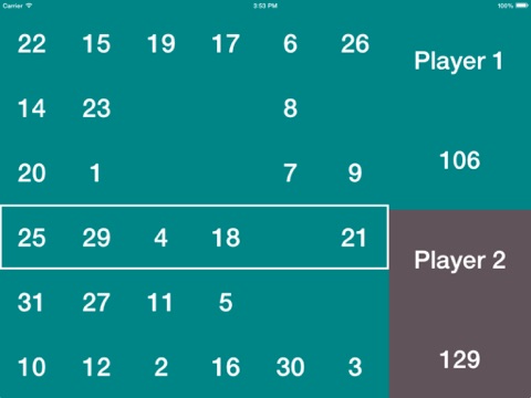 • Player 2 then selects a number in the column that Player 1 selected