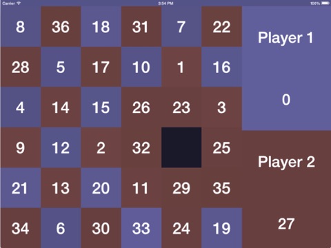 • The numbers surrounding the selected number flip colors and are now selectable by the other player