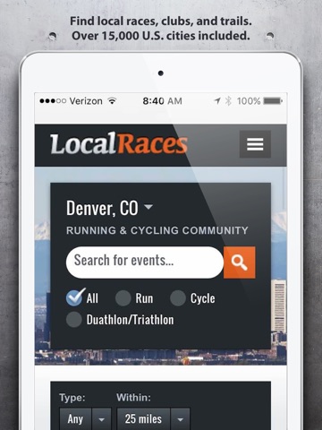 Race Finder, powered by LocalRaces.com, is where runners and cyclists search and sign up for events, join local clubs, and discover local group runs and rides.