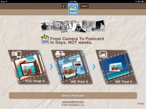 Race It Home is a hassle free way of sending proper personalised postcards back home. Simply take a photo on your iPhone (or iPad), write a message and we do all the hard work.