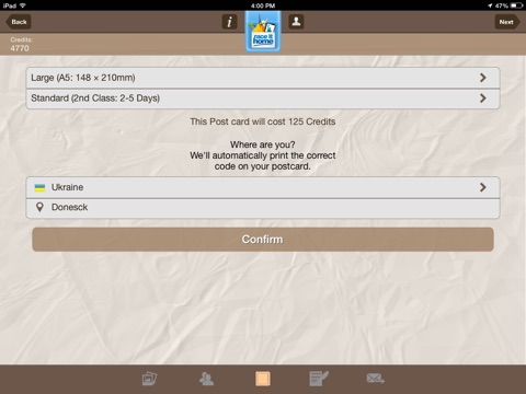Our pricing is easy: use the service as a guest and pay as you go OR register and buy credits in advance... the more you buy the cheaper they are. We offer a choice of A5 or A6 postcards and standard or priority postage.
