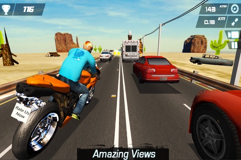 More Danger = More Coins!Enjoy the cutting edge 3D graphics with realistically created environments and amazingly detailed cars.Take a ride in Village, Desert, City, or have a Beach and sea side on highway.