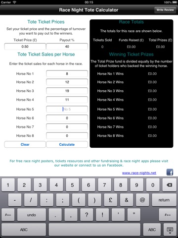 Simply enter your payout percentage, ticket price and the number of tickets sold for each horse and the app will instantly work out how much to pay out to the winning ticket holders.