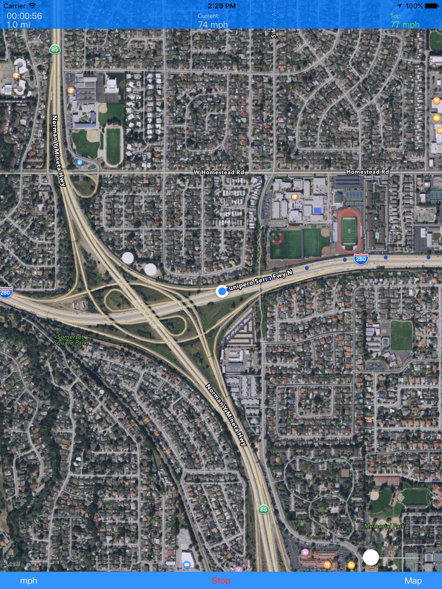 Switch between map types and speed units of your choice.