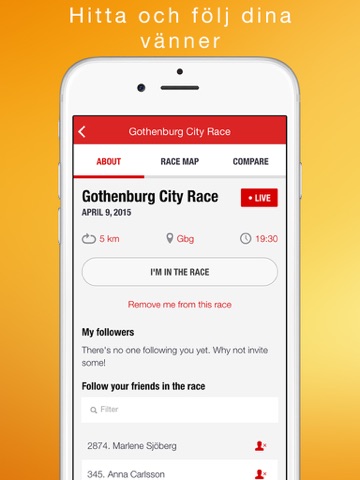 Some races require in app purchase to follow your friends, its simple by clicking the purchase button in the participation list. Payment is per participant and race and you can follow an unlimited number of participants.