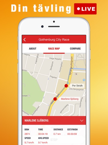 All races have verified course maps and includes intermediate timings as well a points of interest. The participants are shown on the map as soon as they start, click on a name for additional information.
