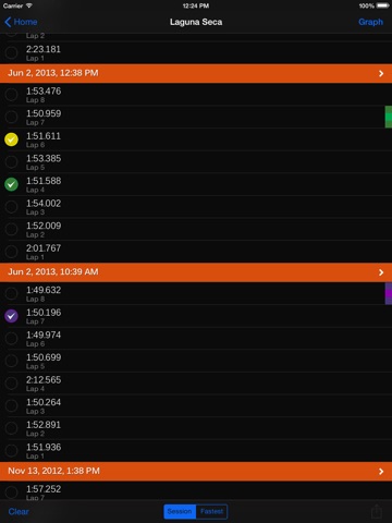 RaceTrace comes populated with some sample data to allow you to play around with the app before you get to the track. You can delete those sample tracks and sessions once youre familiar with the app and have some data of your own. Remember, RaceTrace is NOT limited to those sample tracks. Define your own anywhere you go!