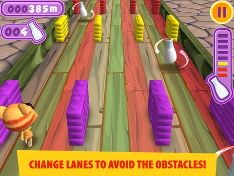 Keep changing lanes to avoid obstacles and collect milk bottles to fill up your energy!