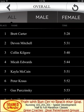 Racing Systems Mobile Results App enables users to find event information, maps, track their favorite athletes, and view results for events timed by Racing Systems. Race results will be available at the touch of your fingers powered by the RR:360 results engine™, and also will be posted on the Run On! website.