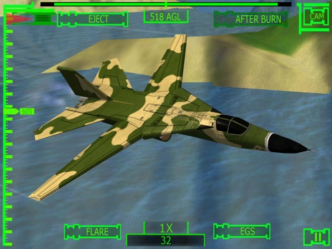 • Rendered in lime green, Radar Evade’s menu pays homage your fighter jet’s HUD.