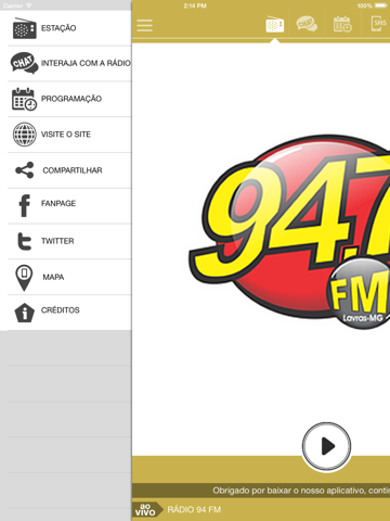 Ouvir a sua rádio favorita, falar com a rádio através do CHAT ouvinte/ emissora gratuito e ilimitado, favoritar o seu programa especial, enviar um SMS para a Rádio, acessar as redes sociais e o site da emissora, além de compartilhar o que está ouvindo onde você quiser.