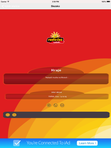 Radio Čas – nejvíce českých a slovenských písniček. Aplikace pro mobilní telefony a tablety. Regionální vysílání, informace o právě hraných písničkách, přímé spojení do studia, rychlý přístup na web casradio.cz a facebookový profil Radia Čas.