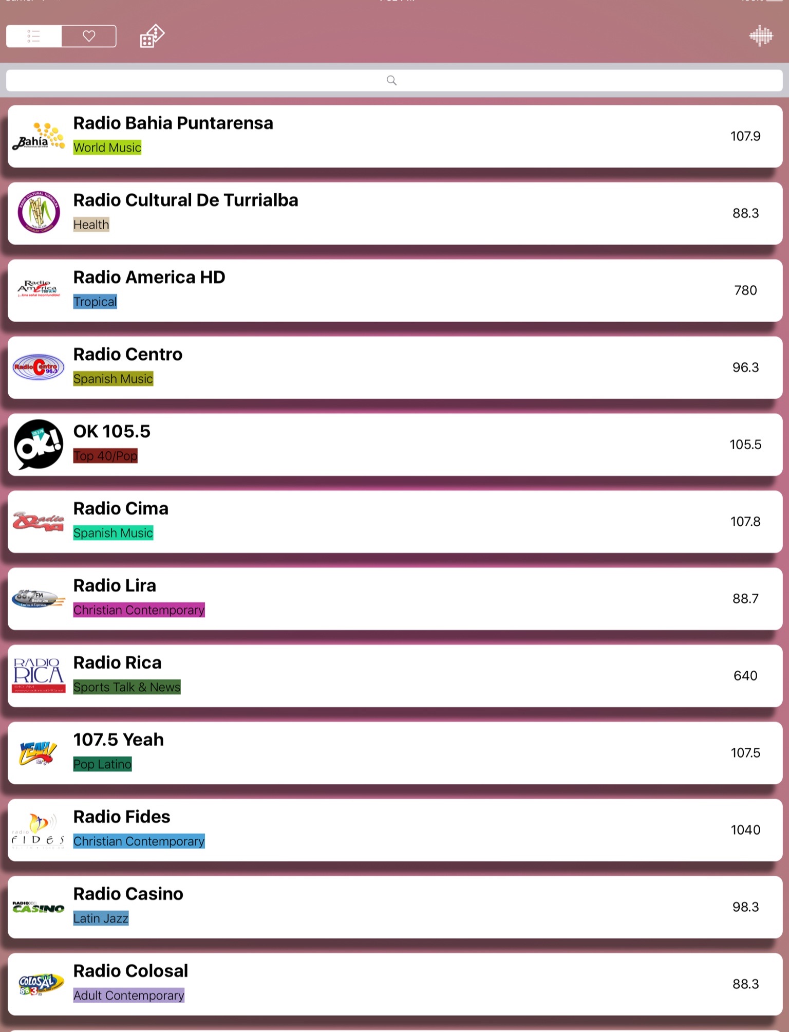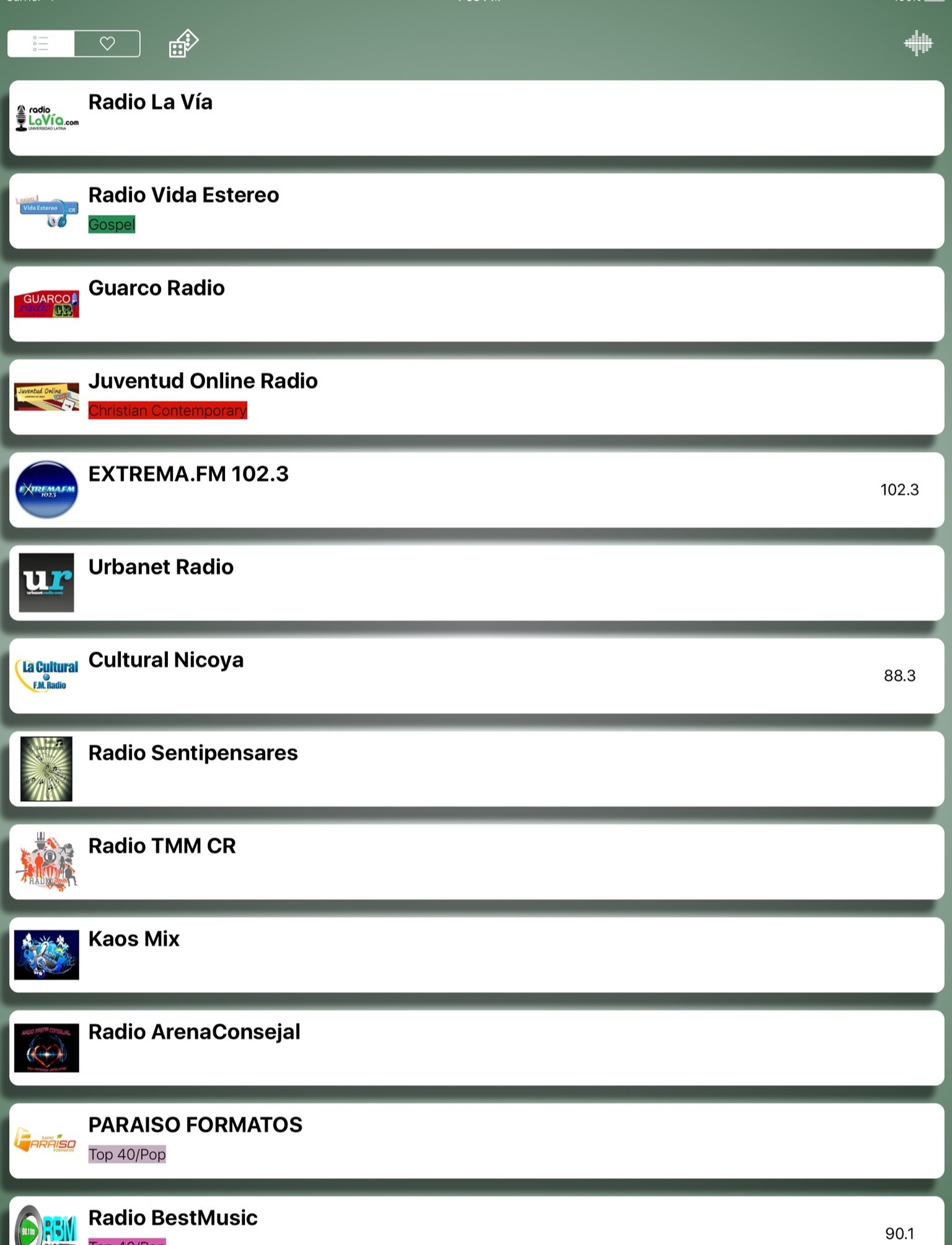 * Reproduce la mayor colección de estaciones de Costa Rica.