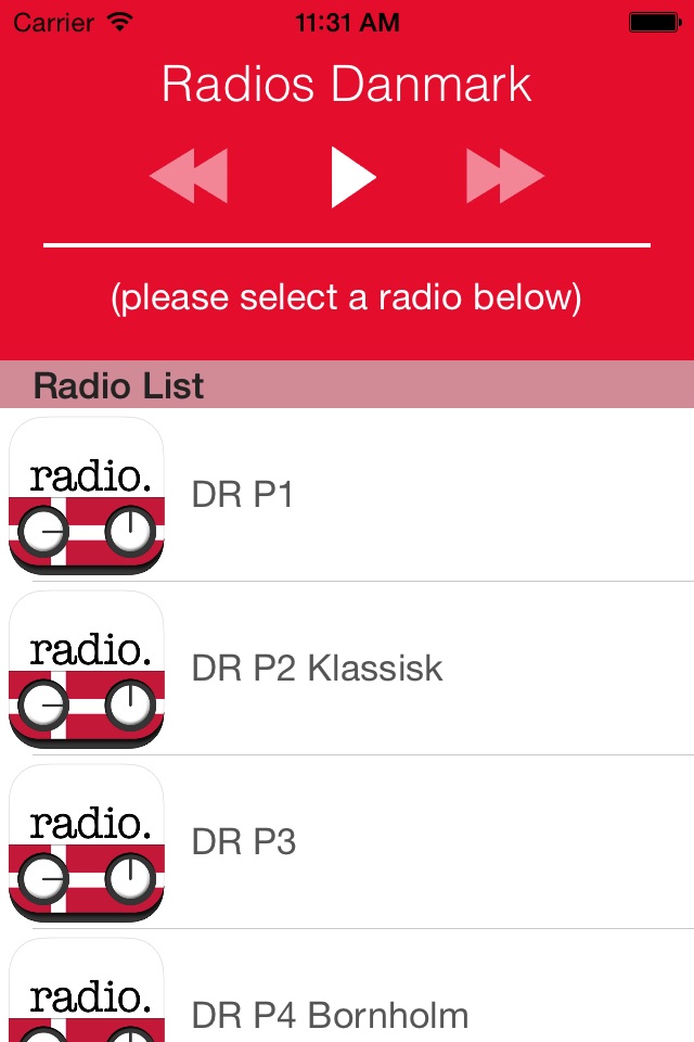 Alle af Danmarks radioer til rådighed i denne ansøgning. Listen er udtømmende.