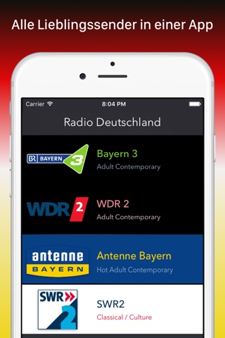 Lade dir jetzt Radio Deutschland herunter und höre alle Sender gratis auf deinem Iphone! Natürlich läuft die App auch im Hintergrund oder im Sperrbildschirm.