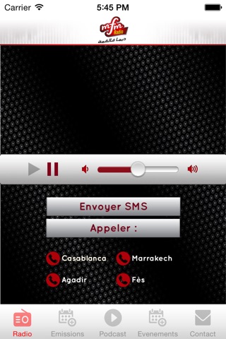 accès au podcasts, informations des différents événements publiés dans la radio.