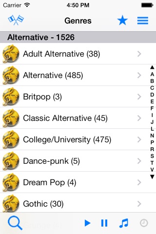 * Users can search for genres/countries/radio stations in A-Z index;