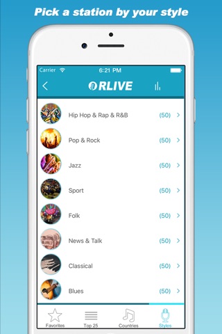 RLive World puts the top radio stations from around the world under your finger tips in a single App!