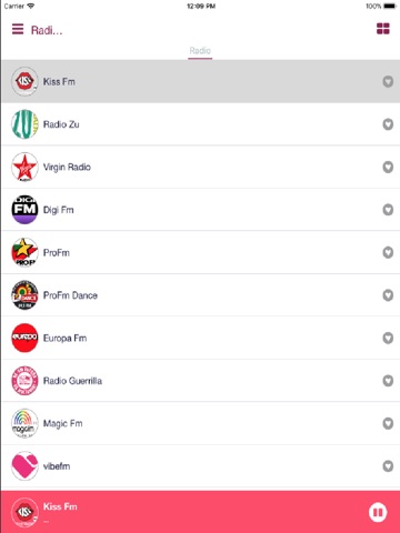 KissFM Romania, Radio Romania Actualitati, Digi FM, Antena Satelor, Europa FM, Radio Manele, Itsy Bitsy, Radio Gold FM, Magic FM, National FM, ProFM Dance, Bucuresti FM, Radio Delta RFI, Radio Guerrilla, Radio Impuls, Little Samaritean Radio, Radio Romania International 1, Radio Romania International 2, Radio Romania International 3, Radio Trinitas, Radio Vocea Sperantei 2, Radio ZU Live, Virgin Radio, RockFM, Radio Cultural, Radio Muzical, Romantic FM, Sport Total FM, Aquarelle FM, Banat FM, Best FM, Big FM Deva, Buzz FM, CFM Constanta, City Radio Satu Mare, Radio Cluj, Doctor FM, Dream FM, EcoFM, ErdelyFM, Favorit FM, Friss FM, Fun FM, Hit FM, Radio Orion, Impact FM, Jazz Radio, Jurnal FM, Kiss FM Chisinau, Kolozsvari Radio.