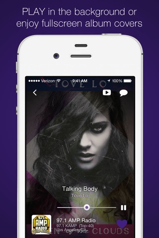 Watch the music video for the currently playing song by simply tapping the “play” icon at anytime. Additionally, the search function allows users to instantly browse videos for any song or artist. Video content can be enjoyed directly on your device, or streamed to the big screen via Apple TV & AirPlay.