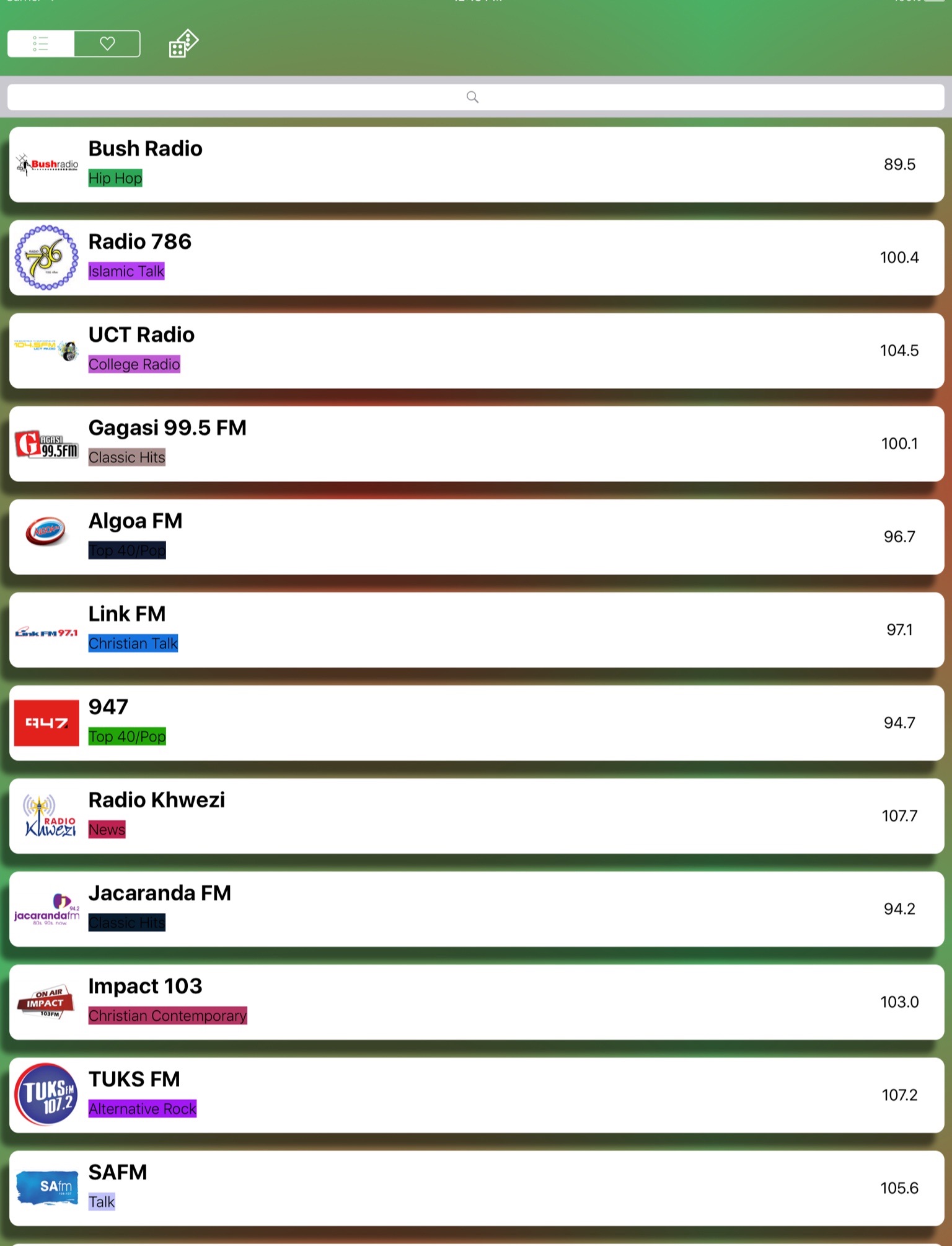 Listen to the best radio stations of South Africa in our application. You can choose from sports, news, music and other radio stations.