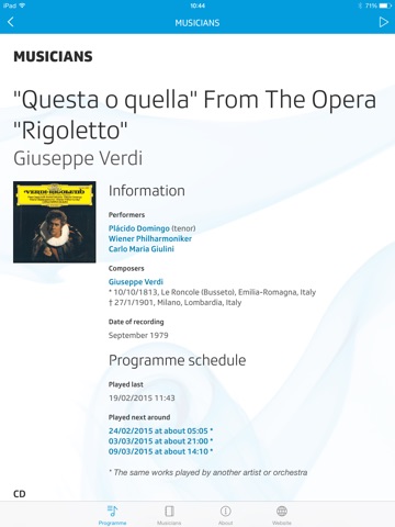 Application absolument géniale. Surtout le lien entre chaque morceau avec un magasin ou il est possible dacheter le CD par internet. Brillant! Merçi beaucoup.