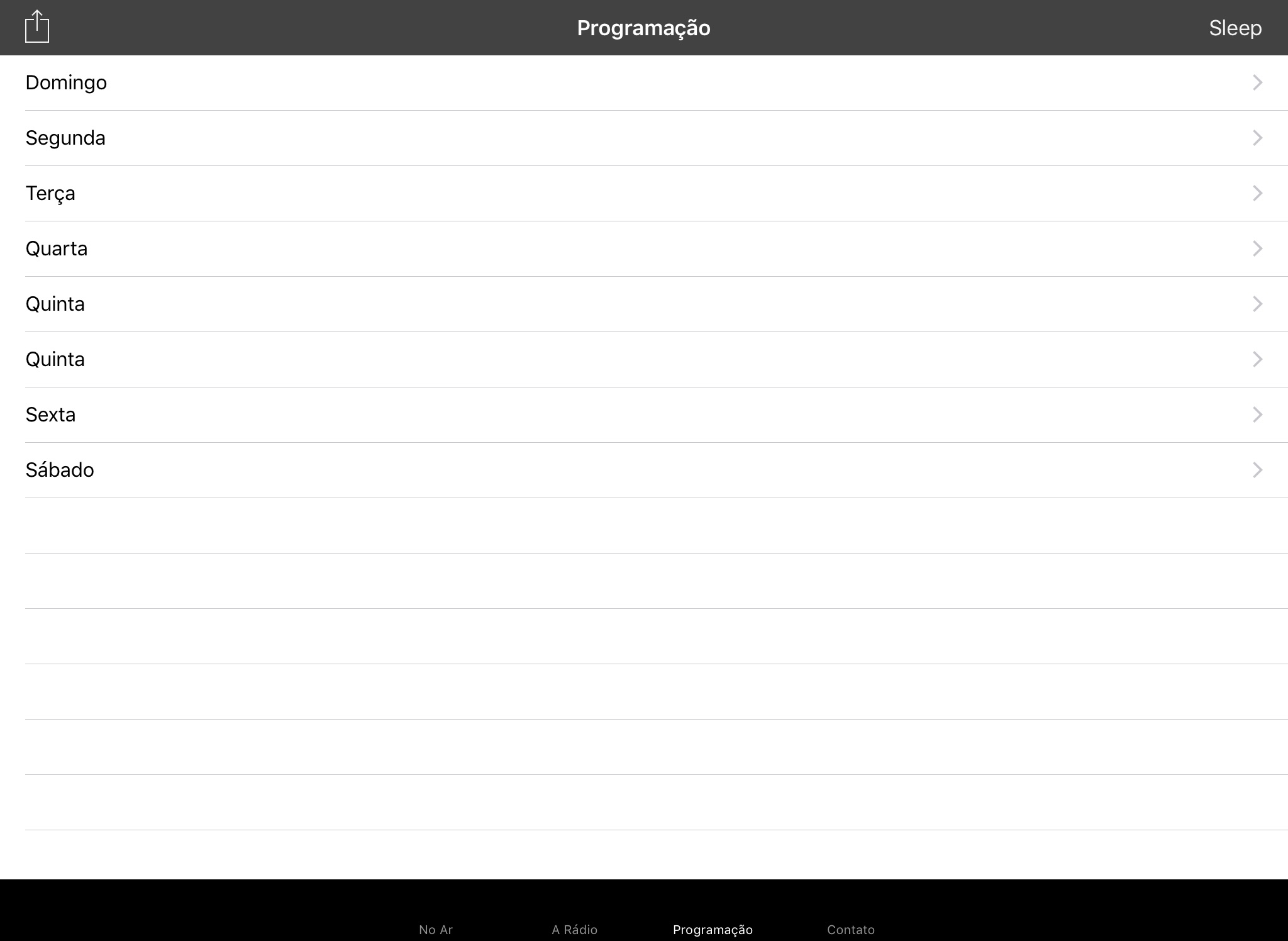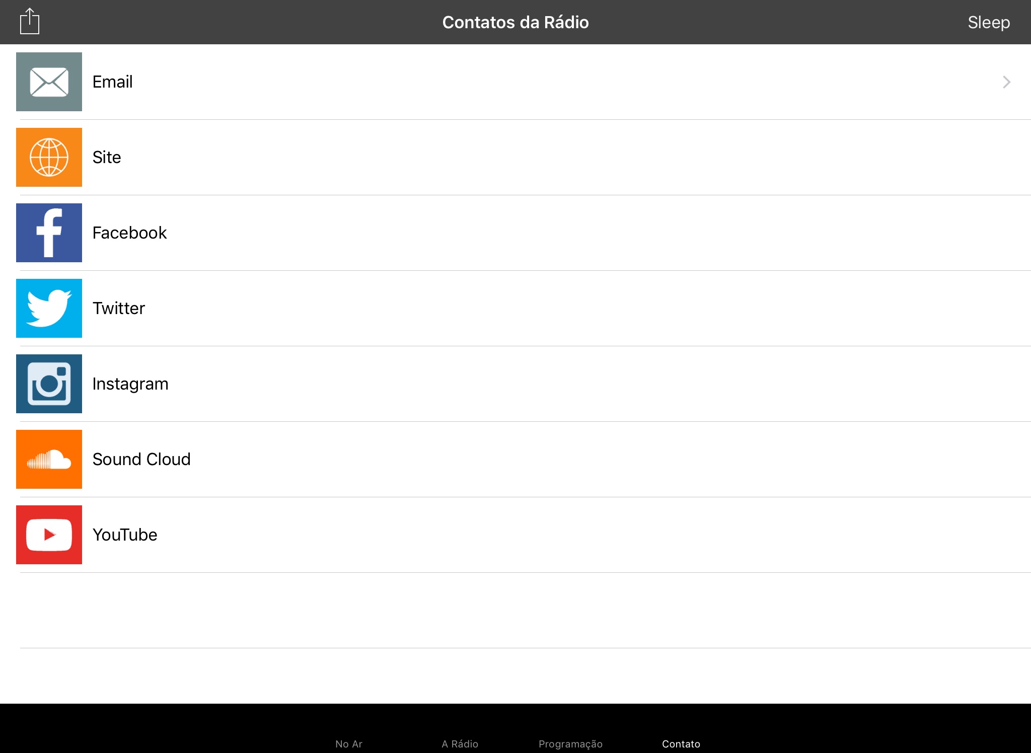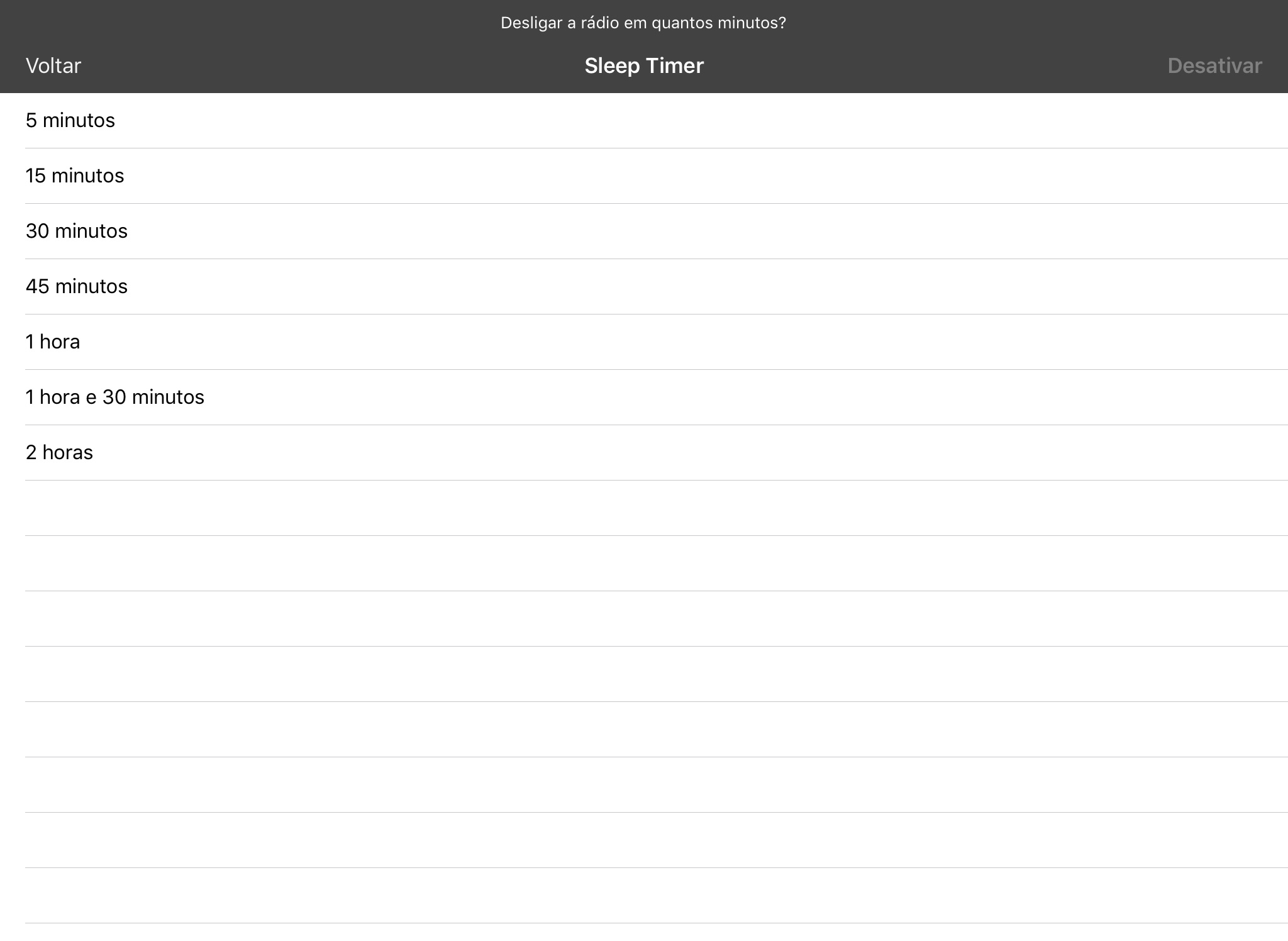 * Função Sleep: programe quando a rádio será automaticamente desligada