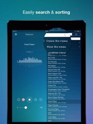Internet Radio player Radiocent provides unique ability to browse the largest database of radiostations from all over the world.
