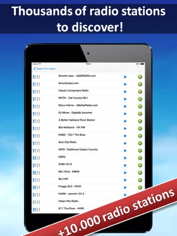 You have access to our complete database which includes tens of thousands of radio stations around the world! You can try any radio, and you add your choice to your favorites.
