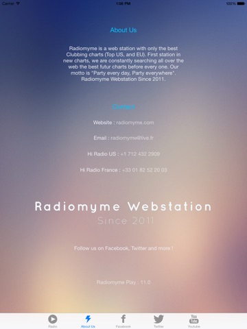 Try Radiomyme app for free today, and enjoy the hight quality webstation on your iPhone, iPad or iPod Touch.