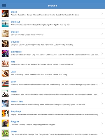 • Look for a radio stations using keywords like artist name (Adele, the Beatles, Led Zeppelin, Katy Perry etc.) and genre (Rock, Salsa, Electronic, Reggae, Top 40, Hip-Hop, Classical, Jazz, Sports, News, Weather, etc.)