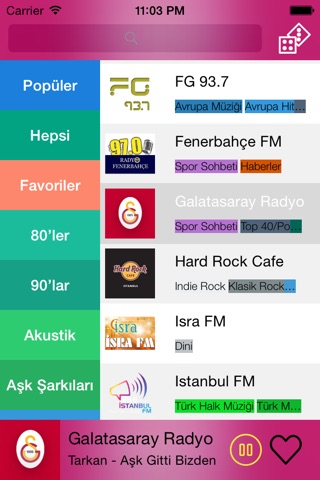 Kral FM, Kral Pop, Kral Türkü, Kral World, Küpe FM, Lalegül FM, Lig Radyo, Lokum FM, Londra Türk Radyosu, Lounge FM,PAL FM, PAL Station, Paris Café, Park FM, Pitchfork Radio, Polis Radyosu, Power FM, Power Greece, Power Italy, Power Love, Power Rocks, Power Smooth Jazz, Power Türk, Power Türk Akustik, Power XL,Açık Radyo, Akdeniz FM, Akra FM, Akustikhane,NTV Radyo, NTV Spor Radyo, Number One FM, Number One Heart, Number One Remix, Number One Slow, Number One Türk, Number One Türk Best Of, Number One Türk Remix, Number One Türk Slow, Olay FM, Osmanlı FM, Ostim Radyo, Özgür Radyo, Radio FG, Radio Line, Radio Paradise, Radiofil, Radyo 7, Radyo 7 Tasavvuf, Radyo Ahenk, Radyo Ahmet Kaya, Radyo Alaturka, Alem FM, Ankara Çağdaş Sanat, Aşk FM, Avrasya Türk, Baba Radyo, Bayram FM, Beat Basement, Best FM, Beşiktaş FM, Borusan Klasik, Burç FM, Capital Radio, CNN Türk, Çilek FM, Damar FM, Dicle FM, Dinamo.fm, Dost FM, Dream, Dream Türk, Efkar, Efsane Sezen, Ekin Radyo, Flashback, Galatasaray Radyo, Groove Salad, Gurbetçi FM, Halk TV Radyo, Hard Rock Cafe, Hür FM, İstanbul FM, İstanbulun Sesi, İTÜ Caz, İTÜ Klasik, İTÜ Rock, Jazz Radio - Bass Jazz, Jazz Radio - Smooth 24/7, Jest FM, Joy FM, Joy Jazz, Joy Türk, Joy Türk Akustik, Joy Türk Rock, K Dance, Kanalturk, Kent FM, Kırık Plaklar, Kordon FM, Makam, Marmara FM, Metallica & Megadeth, Metro FM, Metropol FM, Metropol FM Arabesk, Mix FM, Mydonose, Mydonose Türk, Nor Radyo, Radyo Banko, Radyo Beyaz, Radyo Boğaziçi, Radyo Cihan, Radyo D, Radyo Doğa, Radyo Eksen, Radyo Fenerbahçe, Radyo GTÜ, Radyo Haber, Radyo Han, Radyo Kekik, Radyo Kral, Radyo KTÜ, Radyo Mastika, Radyo Mega, Radyo Mood, Radyo Müzik, Radyo ODTÜ, Radyo ODTÜ - Easy, Radyo ODTÜ - Karışık Kaset, Radyo ODTÜ - Rock, Radyo On, Radyo Rhyme (Base), Radyo Rhyme (Soft), Radyo Sert, Radyo Seymen, Radyo Spor, Radyo Trafik, Radyo Turkuvaz, Radyo Viva, Radyo Viva Lounge, Radyo Voyage, RadyoSU, Retro Turk, Rock FM 94.5, Rock On Air, Rock Radio 1, Romantik Türk, Samanyolu Haber, Show Radyo, Slow Karadeniz FM, Slow Turk, Slowtime, Sol Radyo, SOMA FM 80s, Standart.FM, Süper FM, Süper FM 2, TGRT FM, TRT Avrupa FM, TRT FM, TRT Kent Ankara, TRT Kent İstanbul, TRT Kent İzmir, TRT Nağme, TRT Radyo 1, TRT Radyo 3, TRT Radyo 4, TRT Radyo 6, TRT TSR, TRT Türkü, Türk Rap FM, TürkTorrent FM, Türkü Radyo, Uludağ FM, Virgin Türkiye, Yön Alaturka, Yön Radyo, Yön Rock