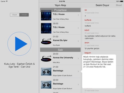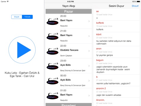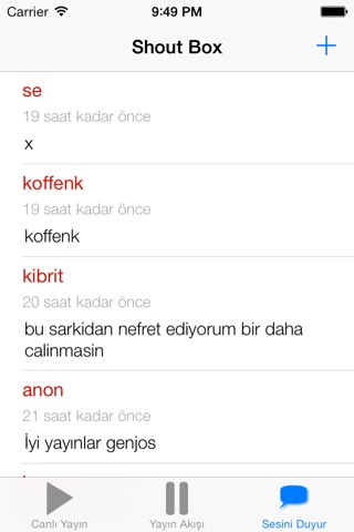 Sesini duyur kısmı sayesinde yayındakilerle ve diğer dinleyicilerle anında yazışabilirsin.