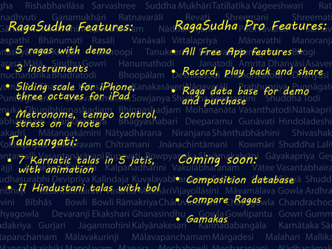 RagaSudha will allow you to play hundreds of Carnatic and Hindustani ragas (Indian classical music) on several instruments without hitting a wrong note and with your eyes closed – come and experience its simplicity and brilliance. Leave, being faithful to the raga to the app!!! You just can’t make a mistake!!! And can now focus on the emotion of the raga.