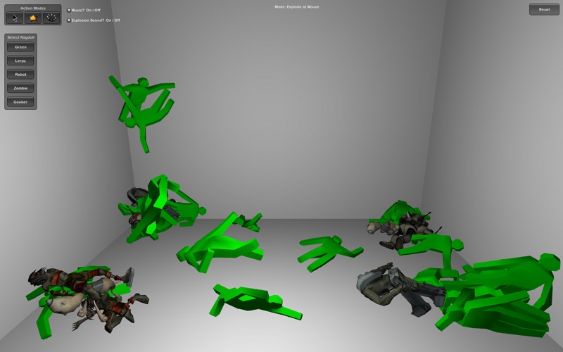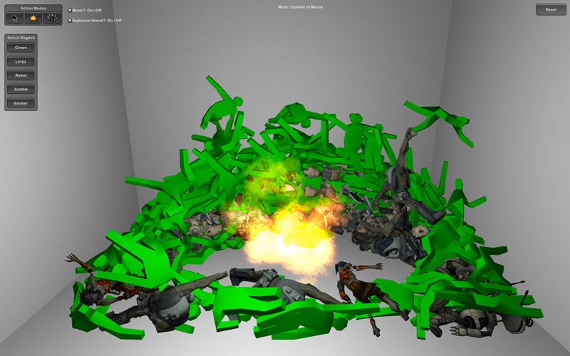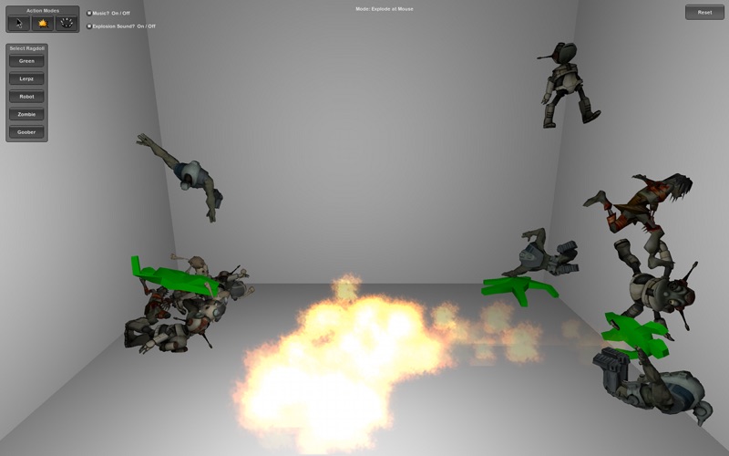 - Cause an explosion, wherever you click, and send the Ragdoll flying!