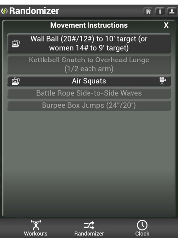 Time/Clock- Choose from a variety of time clocks to suit your needs or exercise preference (e.g., 20/20, AMRAP, EMOM, Fight Gone BAD, Stopwatch, and Tabata, etc.). Time/Clock switches to full screen mode for easy viewing during your workout. Store your time for future reference, goal setting and performance tracking.