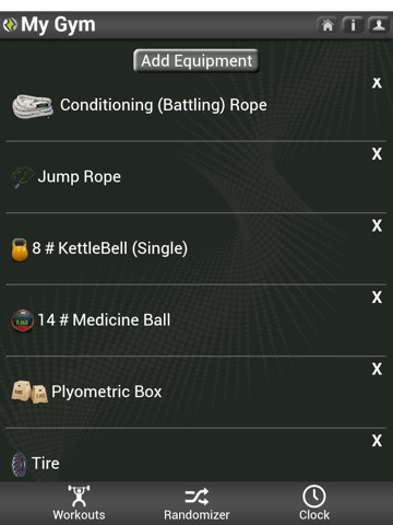 My Gym - Create your own "personalized gym" in My Gym by adding equipment that you own or have access to. Using the My GYM filter, you can create a workout specifically designed for you and the equipment you have at hand.