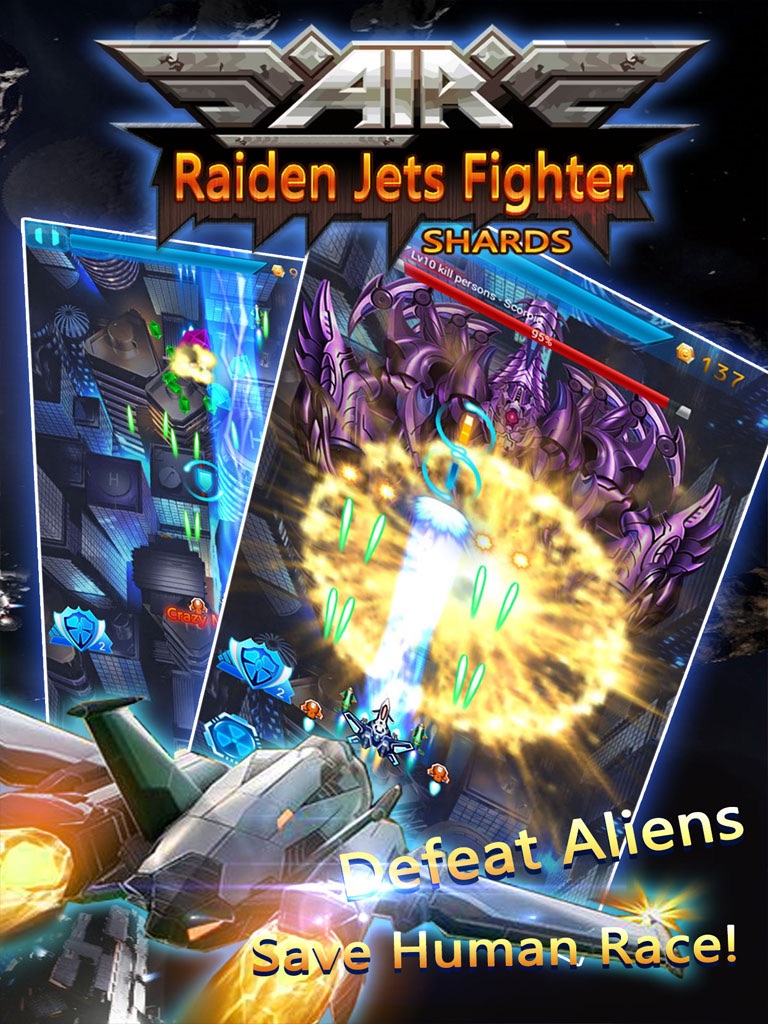 You can control the cool combat fighter and experience the most exciting visual effects. Main weapon all have no up-limit. You can destroy all enemies in the way! You just need to get in your raiden, hold the follows jets and rush at the galaxy! Just go and shoot!