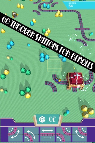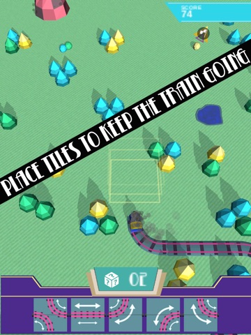 You have 5 tiles to choose from, drop them in front of your train so that it can keep going. Make sure you plan ahead, so you dont end up running into a mountain or your own tracks!