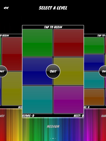 Rainbow Recall is a memory skill game in which a random sequence of colors is displayed to the user. The user must then repeat the sequence of colors in the correct order to gain a point. After every successful repetition, one color is added to the sequence to increase the level of difficulty. The game features both a single player mode and a online multiplayer mode. There are also Game Center Leaderboards for each level of difficulty on single player mode adding the ability to compete and share your scores with friends. It also has many customization options including the ability to adjust the animation speed and the level of difficulty which changes the number of colors displayed.