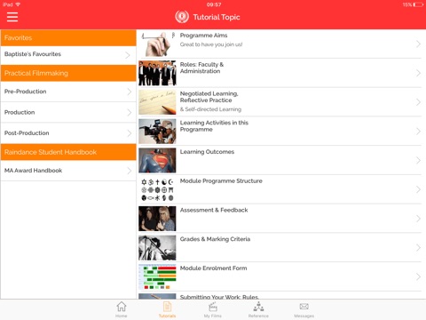 This App was created to enhance the courses for both students and course tutors. The App contains necessary reference materials, filmmaking tutorials, exercises and schedules for each group. Students’ own films are submitted and shared through an interface that makes focusing on the content and purpose of the courses effortless.