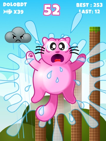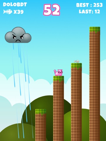 A giant rainy cloud is coming toward you! Help the Pink cat to not get wet.