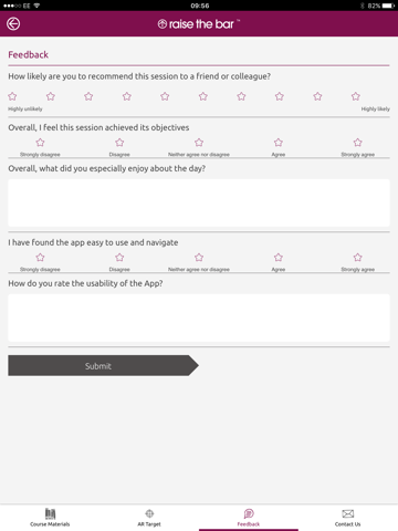 Raise the Bar supports our programmes with a mobile learning app which, through Augmented Reality, will provide an innovative and interactive learning platform in addition to face-to-face training delivery. The app acts as a resource centre for conference agenda, event footage, speaker biography, top tips from your speaker, podcast, providing a solution to collate delegate feedback and measure ROI.