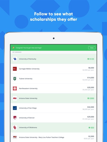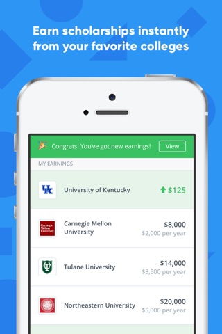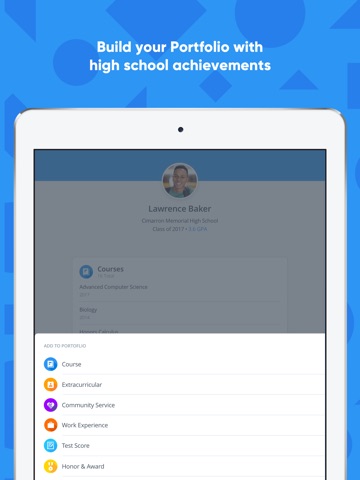 • Add high school achievements, like good grades and extracurricular activities, to your Portfolio and instantly earn scholarships from colleges for each achievement