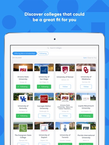 • Follow your favorite colleges and discover new colleges that could be a great fit for you