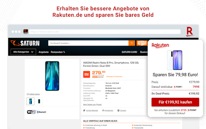 Der kostenlose Rakuten Shopping-Assistent ist die unverzichtbare Browser-Erweiterung, wenn Sie beim Online-Shopping unkompliziert bares Geld sparen möchten. Holen Sie sich jetzt eines der besten Shopping-Addons auf dem deutschen Markt und sichern Sie sich ganz bequem folgende Vorteile: