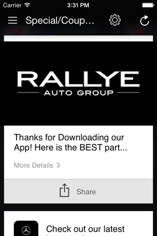 - Check out the "Postboard" for new messages, coupons and specials straight from us to your device! You can even reply to these messages directly